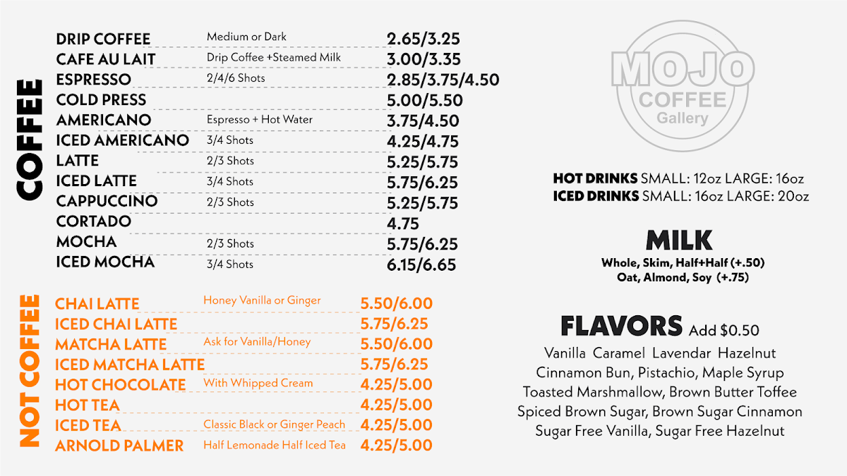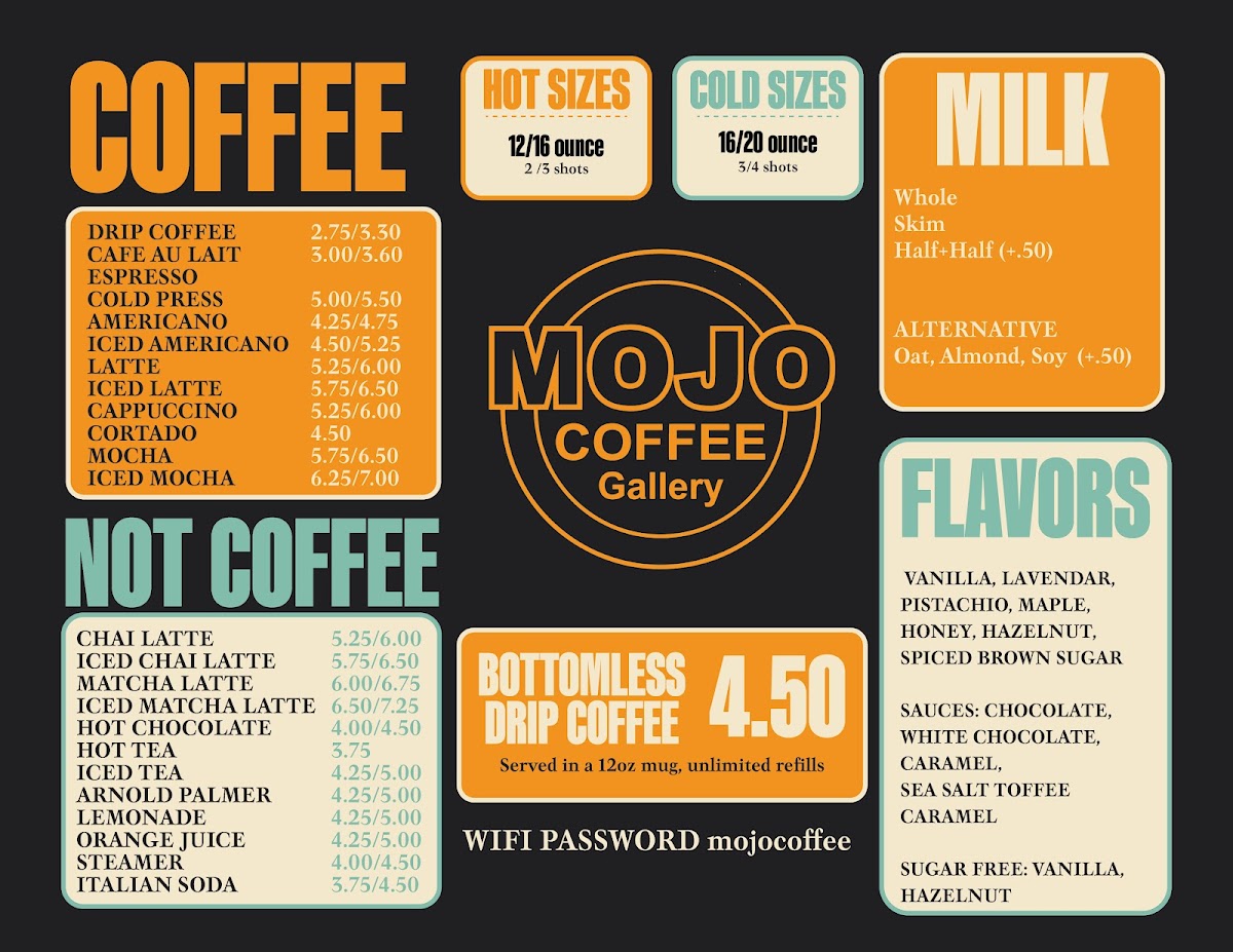 Welcome to Mojo Coffee Gallery, a unique coffee destination nestled at 2205 California St NE in Minneapolis. This café captures the essence of comfort and creativity, offering a warm, eclectic atmosphere that invites relaxation and connection. The extensive menu features delightful options like the highly praised Spanish Hash and the decadent Blackberry White Mocha, both hailed by patrons for their incredible flavors.